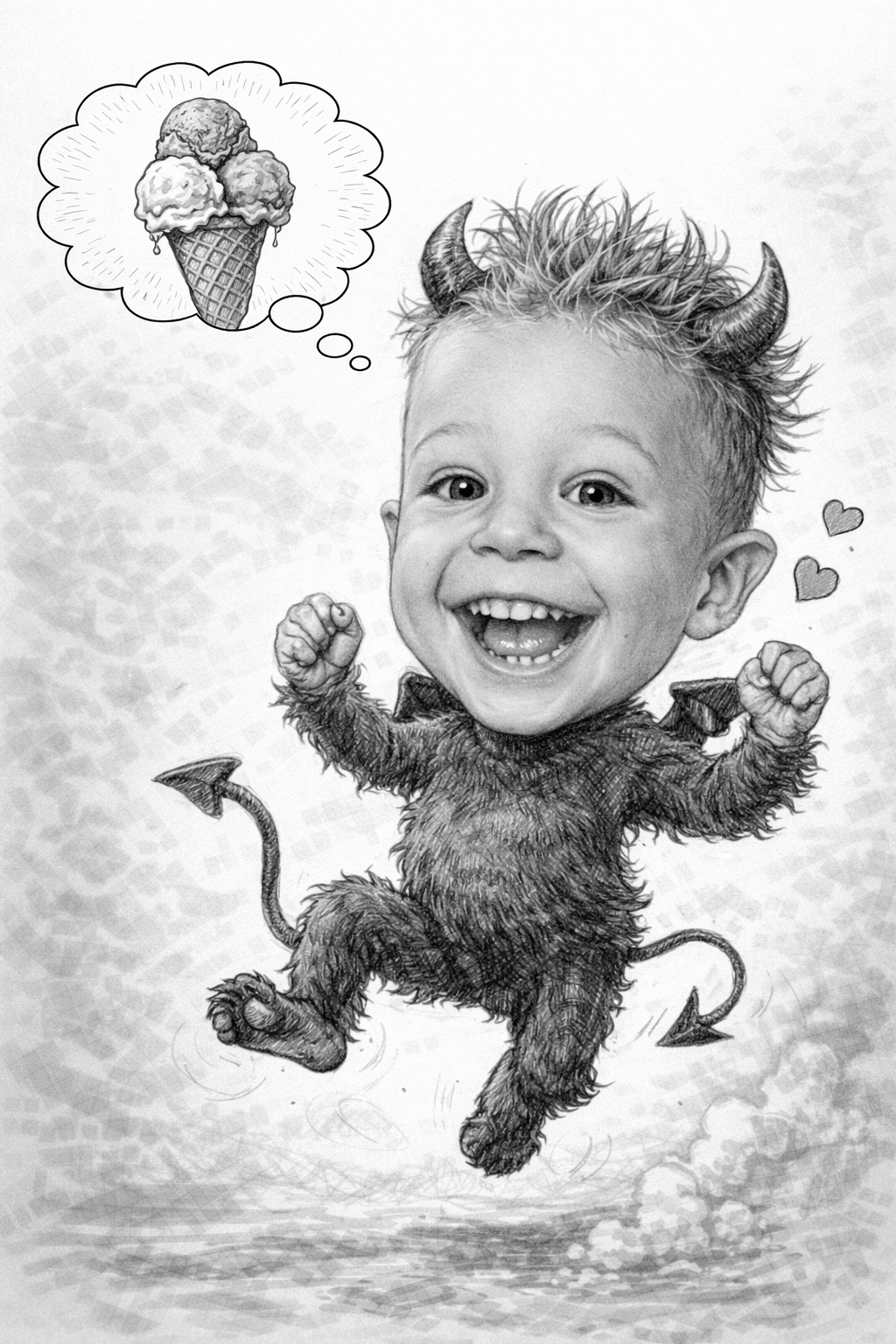 Zadání bylo: Je to neposedný čertík a má rád zmrzlinu.